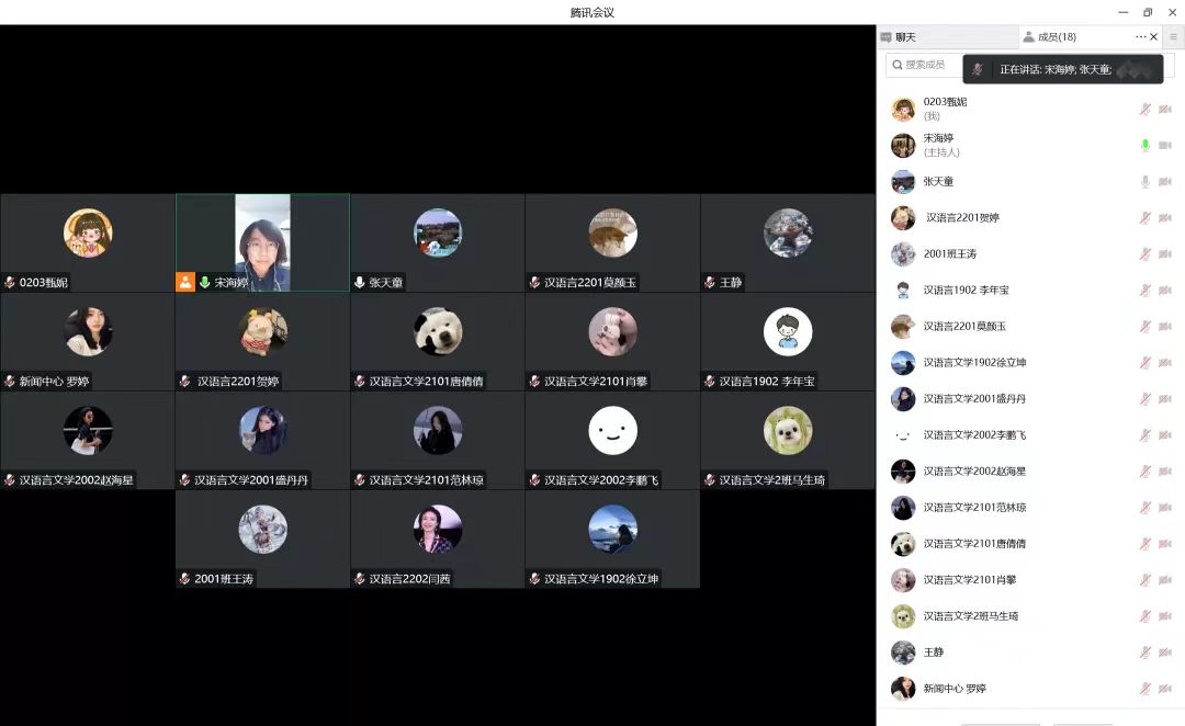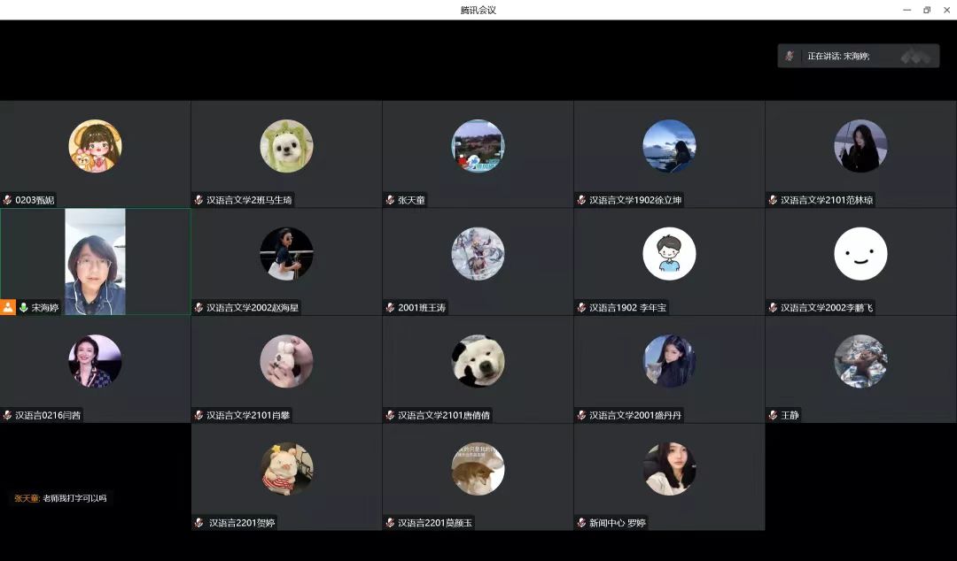 为有效掌握学生疫情期间的线上学习情况,确保师生沟通渠道畅通,及时了解并解决学生面临的问题,11月1日下午,beat365在线唯一官网以线上形式召开汉语言文学系期中教学座谈会,会议由汉语言文学系系主任宋海婷主持,汉语言文学专业各年级学生代表参加了会议。