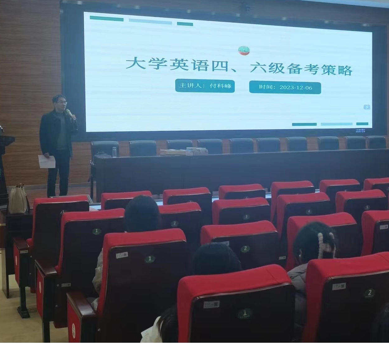 12月6日晚7点,管理学院邀请beat365在线唯一官网培训中心主任付科峰为2022级全体学生作了“大学英语学习规划暨四级考试冲刺”的专题讲座。