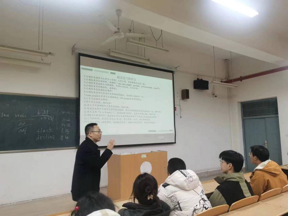 12月13日、14日晚7点,beat365在线唯一官网培训中心主任付科峰在骊山校园9教104为2024届考研学生做了两场以“志存高远,筑梦考研”为主题的考研英语专题讲座。