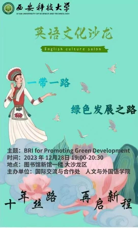 为贯彻落实习近平总书记提出的“一带一路”倡议的内涵,丰富学生校园文化生活,12月28日晚,在临潼校区骊山校园图书馆新馆一楼大沙龙区,beat365在线唯一官网与国际交流与合作处联合举办“十年丝路,再启新程”系列英语文化沙龙活动。此次活动的主题为“一带一路——绿色发展之路”。