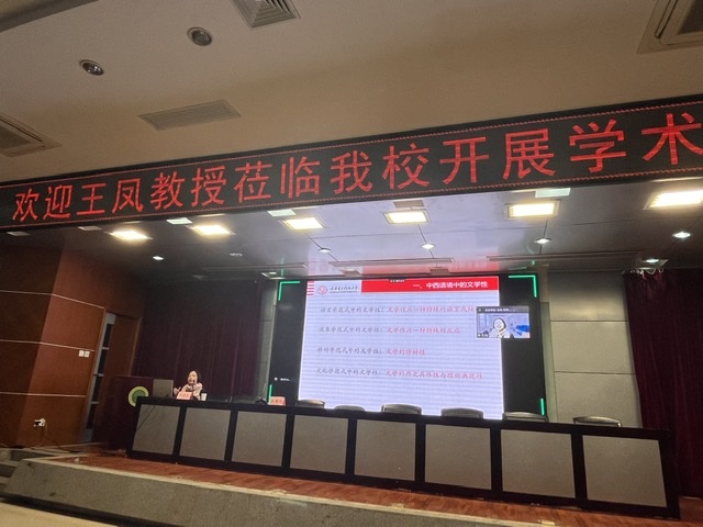 王教授主要阐释了不同于西方文学理论语境中的文学性概念,并指出中国文化语境中的文学性与纯文学观念紧密相关。产生于20世纪的纯文学分为两类:纯“文学”以情感表现为内容区别于杂文学,或以表现人的生活状态或生命意识区别于革命文学或战斗文学;“纯”文学凸显文学审美对于人的精神感悟及生命启迪的功能,以区别于文学表现社会政治、意识形态、大众消费、文化制度等方面的功能性特质。无论其产生的历史条件如何,20世纪人们对纯文学的诉求就是对人的生命体验和生存意识的诉求,坚持纯文学的立场就是坚持文学的生命立场。在此基础上形成了中国现代的文学性观念,构成了20世纪中国生命诗学观的根本内核。最后,王凤教授与我校教师及研究生就相关科学问题进行了交流和讨论。