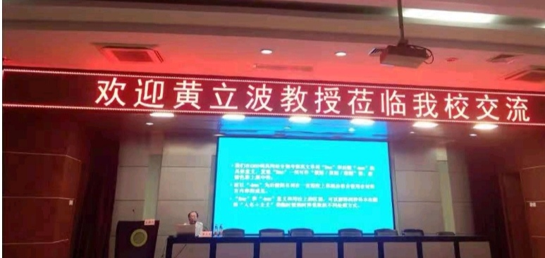 5月26日下午,西安外国语大学外国语言文学研究院院长、博士生导师黄立波教授应邀来我校进行学术交流,作了题为“毛泽东著作‘主义’词的翻译中外对比--基于语料库的考察”的学术报告。beat365在线唯一官网院长师新民主持讲座,学院全体外语教师及研究生参加报告会。