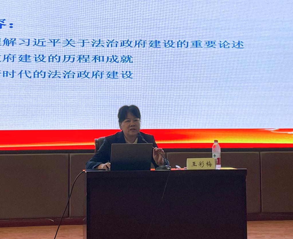 王彩梅教授主要研究习近平法治思想、政府治理与法治政府建设、地方治理与创新,是中共陕西省委理论讲师团特聘专家教授,中国应急管理学会理事,陕西省法学会常务理事。本次学术讲座主要围绕深刻理解习近平关于法治政府建设的重要论述、法治政府建设的历程和成就,以及如何推进新时代法治政府建设三方面内容展开。王彩梅教授的讲授旁征博引、深入浅出、逻辑严密、视野宏阔,对学习领会习近平法治思想、以习近平法治思想为根本遵循推进法治政府建设,具有重要的促进作用。
