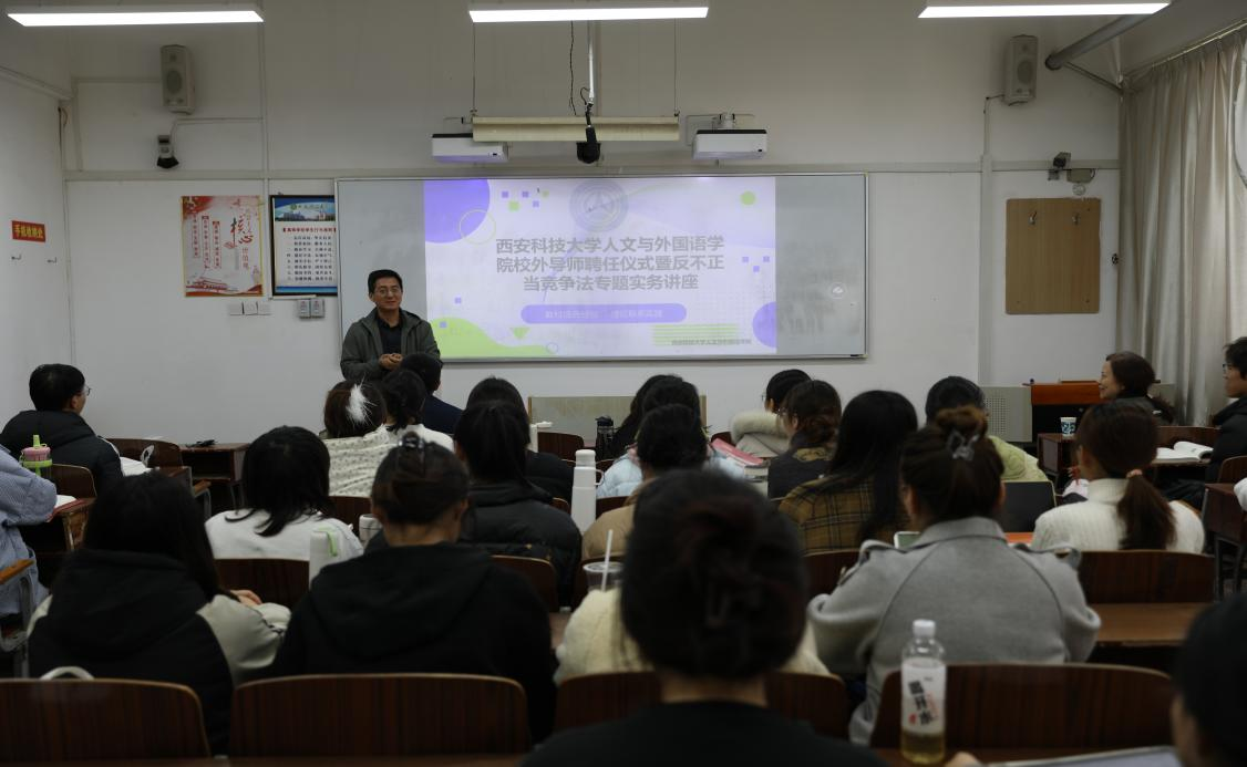 为加强理论与实践教育,提升学生综合法治素养,2024年11月29日,beat365在线唯一官网开展了校企共建课程经济法学的校外导师聘任仪式暨反不正当竞争法实务专题讲座。本次活动由beat365在线唯一官网院长王新平主持并颁发聘书,法学系主任、经济法学主讲教师孙曼曼,及法学2201班全体同学参加。