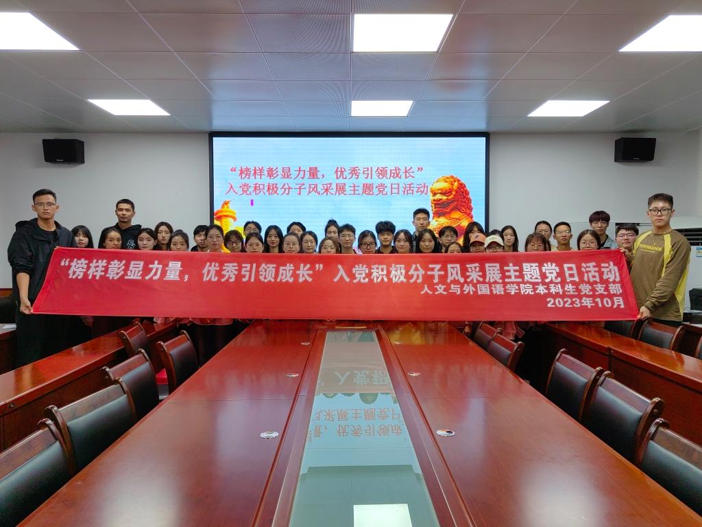 为深入开展学习贯彻习近平新时代中国特色社会主义思想主题教育,认真落实新时代党的建设总要求,充分展示我院入党积极分子的先进形象,激励广大学生群体对标先进、见贤思齐,10月13日,人外学院本科生党支部于二教226会议室开展“榜样彰显力量,优秀引领成长”入党积极分子风采展主题党日活动。学院本科生党支部书记李银亮、本科生党员代表、入党积极分子代表、学生干部代表以及低年级学生代表,共计60余人参加本次活动。