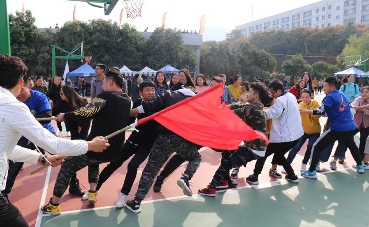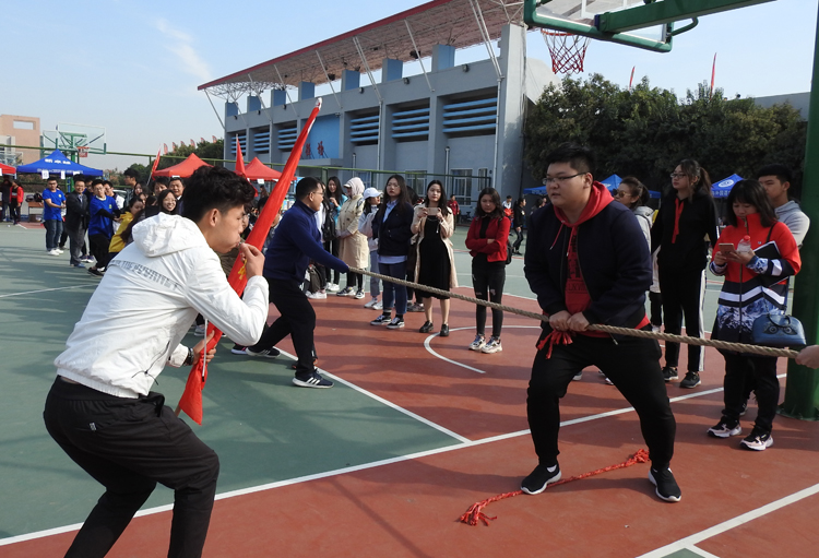 10月11日,beat365在线唯一官网在临潼校区西篮球场举行了师生趣味拔河比赛。学院领导班子成员、各系部教职工以及学生代表60余人参加了比赛。