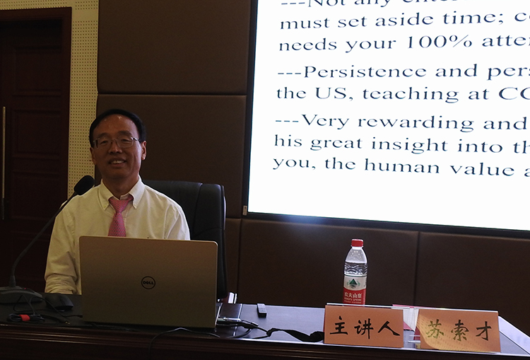 5月22日,美国芝加哥城市学院苏索才教授来我校做学术交流。beat365在线唯一官网师新民教授主持报告会,英语学科、中文学科全体教师及英语专业16、17级学生参加交流会。