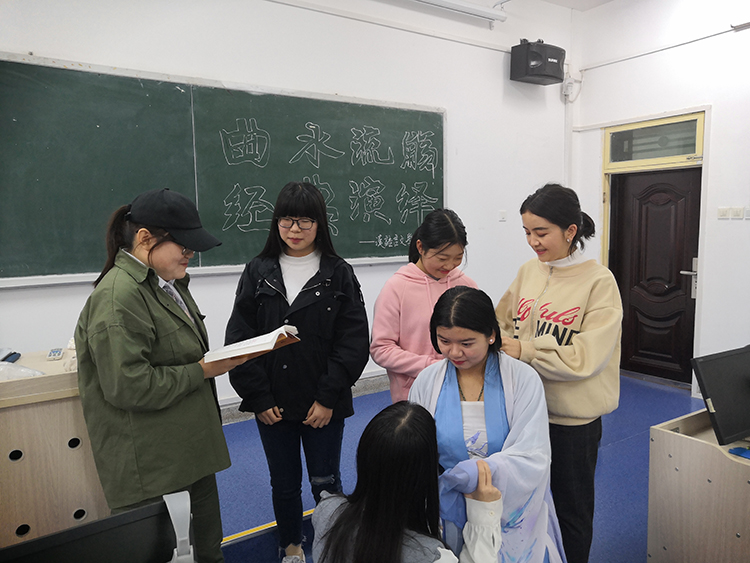 2019年10月16日晚六时,beat365在线唯一官网“曲水流觞经典演绎系列活动——古代文学专题”在临潼校区骊山校园图书馆一层创客空间举行。本次活动由beat365在线唯一官网主办,汉语言文学1801班承办,汉语言文学专业副教授乔辉担任指导老师。汉语言文学专业2018级全体同学参加本次活动。 活动采用分组情景式表演的方式进行。第一组同学带来了《诗经•静女》,再现了先秦时期的爱情故事,别致的道具和精彩的演出还原了世人心目中的爱情,表现了男子对恋人温柔娴静的称赞以及对她的深深情意,体现出年轻男女之间纯美爱情的美好。第二组同学带来了《梁山伯与祝英台》,一曲《梁祝》令人感慨万千。通过同学们的生动演绎,大家更深一步地体会到了,悲剧本身承载的古代社会中女性大胆追求真爱、 渴望美好爱情的强烈情感。第三组和第四组同学不约而同的选择带来了《聊斋•连城》,从乔生和连城两位男女主角的不同角度生动地进行诠释,在感人的演绎氛围中,表现了强烈的反封建礼教的精神。第五组同学带来了《西游记•三打白骨精》,充满诙谐意味的台词和风趣的表演,使同学们在嬉笑怒骂的氛围中体会到了作品真正的主题:防人之心不可无,提醒人们不要被表面现象、虚情假意、伪善的一面所蒙骗。第六组则带来了《长生殿》的表演,“天长地久有时尽,此恨绵绵无绝期”,伴随着《长恨歌》的诵读和真挚的表演,表现了唐明皇和杨贵妃凄美的爱情故事,为观众们带来了强烈的感官体验。 最后,乔辉老师对本次活动的组织及呈现作出了简要的点评。他首先感谢了班委的积极组织和每一个同学的认真准备和辛苦付出,对同学们的表演与其背后反映出的作品改编能力做出了肯定。同时指出,同学们不仅要把故事本身演出来,还要演进心里,要了解作品所蕴含的深刻意义,这才是经典演绎的“初心”。