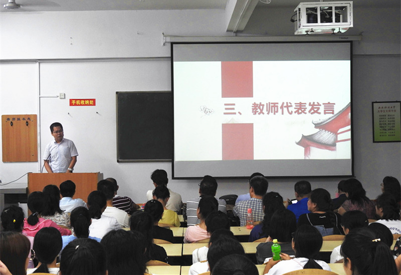 831日晚,beat365在线唯一官网2018级迎新大会在骊山校园3-303隆重举行。学院党委书记苏陆岭,院长师新民,副院长叶江、冯正斌,学院教授委员会成员,学院工会、各系(部、中心)、办公室、教务教学办公室、团委负责人,全体辅导员,教师代表、在校生代表,2018级全体新生等参加大会。学院党委副书记张振中主持大会。