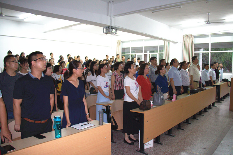 师新民最后讲话,表达了对2018级新同学的热烈欢迎和祝贺,并简要介绍了学校发展概况和学院师资队伍、科学研究、学生工作等相关内容,希望大家在今后处理好通识教育与专业教育、课内教育与课外教育、共性教育与个性教育等三个关系,多读书、懂感情、重集体、爱国家,丰富大学生活,铸就人格魅力,培养思辨能力和批判精神,强化独立见解和解决问题的能力。