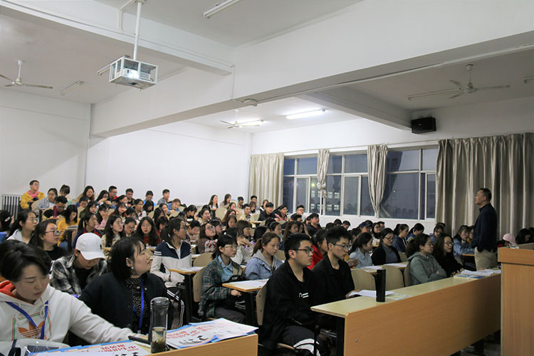 2017级辅导员韩帅主持交流会并强调了考研对学生的重要意义,要求全体学生提早准备,树立目标,发掘自身潜能,积极参加各类英语竞赛活动,努力提高语言应用能力。2017级全体学生参加了交流会。