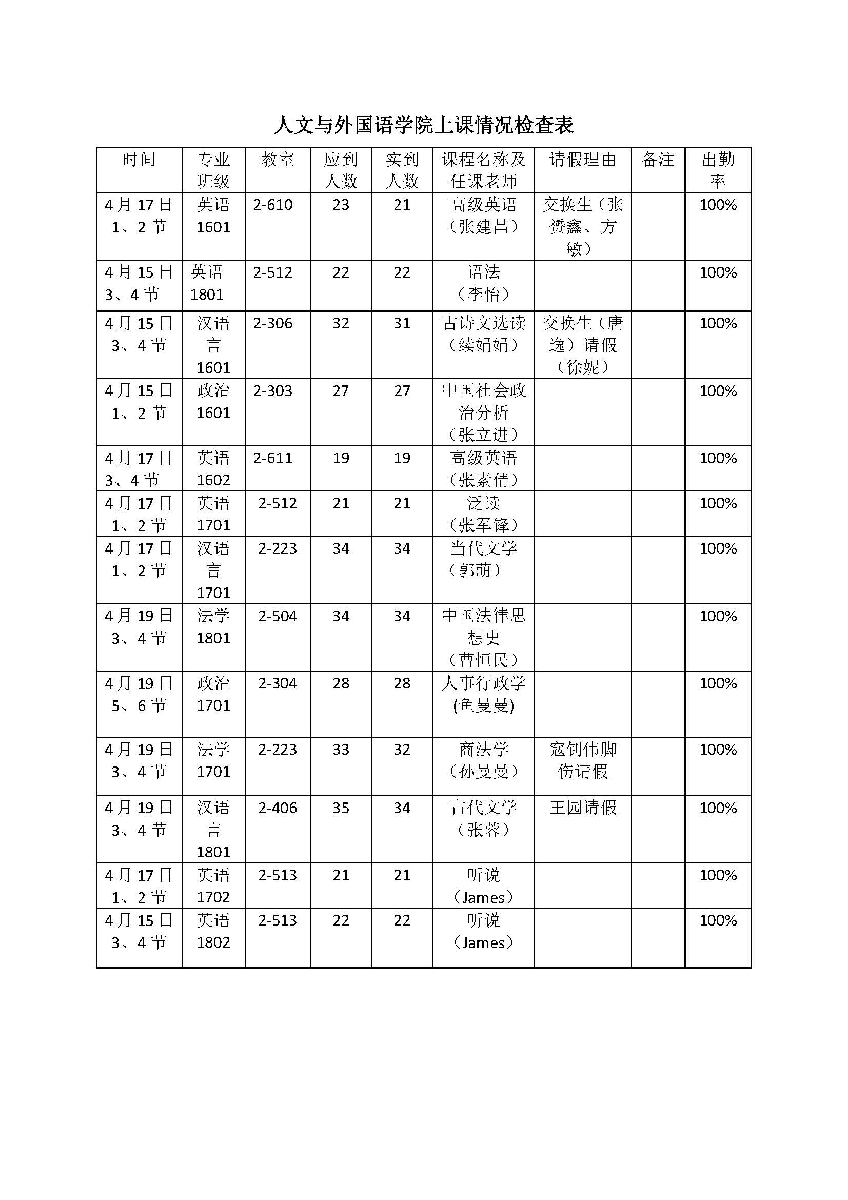 关于beat365在线唯一官网第8周上课情况检查的公示
