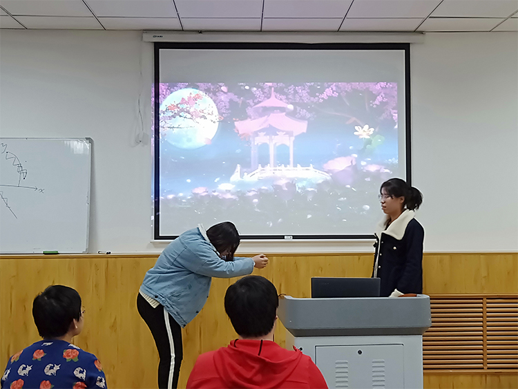 本次读书会以分组的形式进行比拼,一共分为五组,实行投票制。首先五颜组讲述了十二生肖的由来以及它们排序的由来,并讲述了猫和老鼠的故事,幽默的将十二生肖与十二时辰对照,最终讲述了时刻划分的由来。第二组七零大街讲述了道教与神话之间的碰撞,并解释了八仙歌中的经典典故,并上升到了一定的理论层次,使人受益匪浅。第三个如来佛组讲述了女娲补天神话中的洪水主题,解释了浑沌象征,以及祭祀的由来。第四个老来俏组演绎了后裔射日的形象,生动再现了神话故事,以及对自然集权的态度,考虑了人性,神性的关系。第五个香草美人组以碧海青天夜夜心为主题,并联系了现实生活中嫦娥四号的成功发射,表达了对人类未来新篇章的期待。