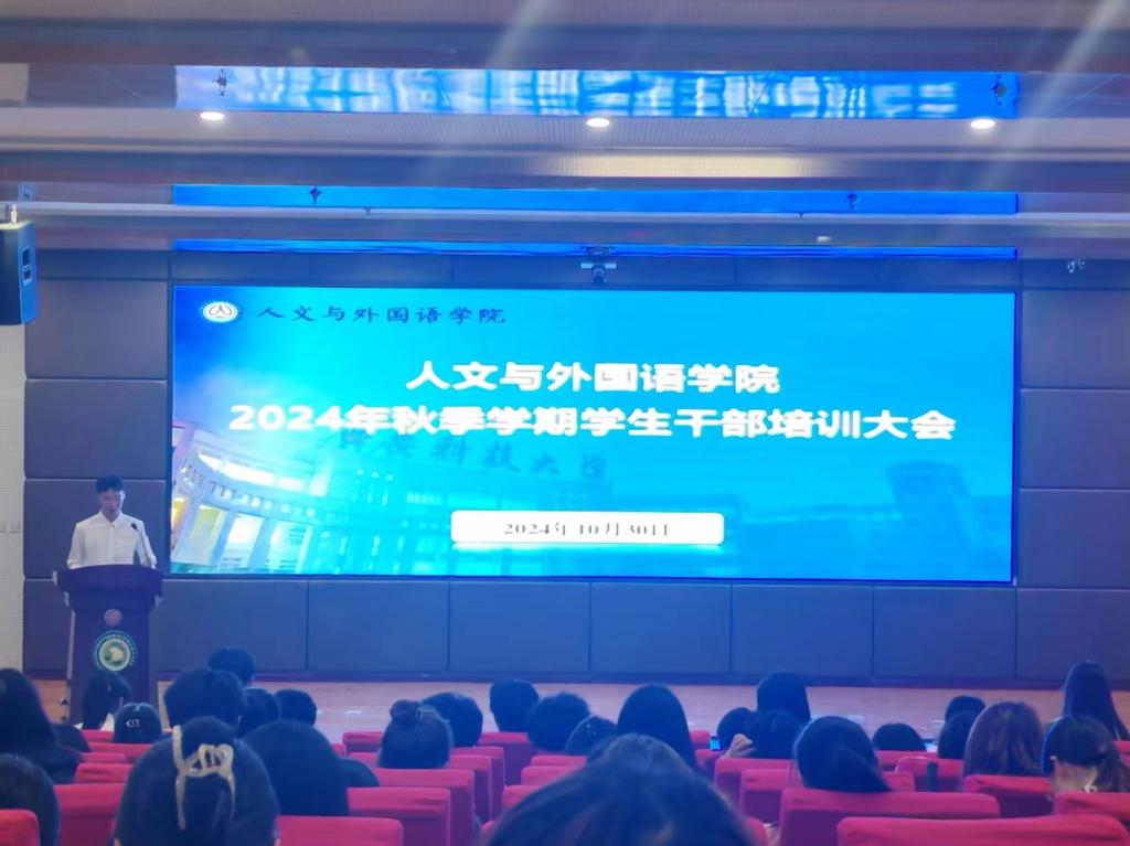 为加强学生干部队伍建设,充分发挥学生干部的思想引领和模范带头作用,10月30日晚,beat365在线唯一官网举办2024年秋季学期学生干部培训大会,学院团委书记芮智刚、2024级辅导员王维蒙、全体班干部、各宿舍舍长、团委学生会全体干部参加了会议,会议由学生会主席欧彪主持。
