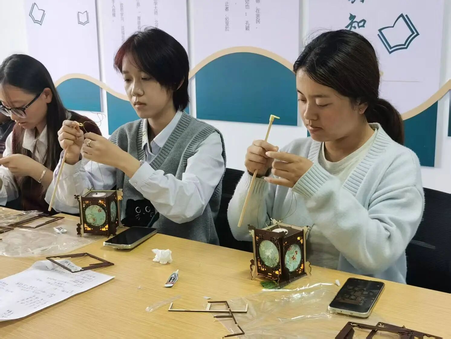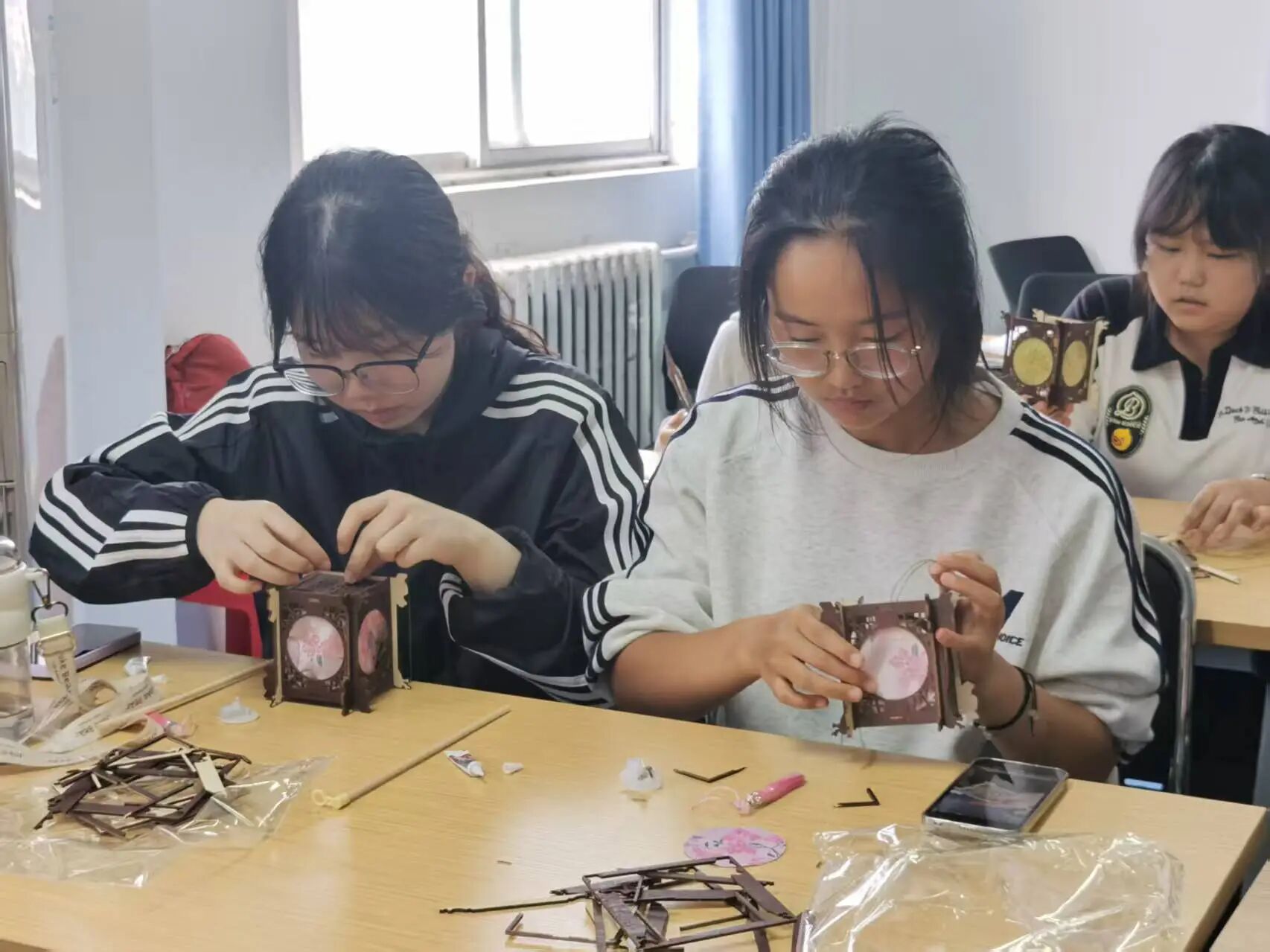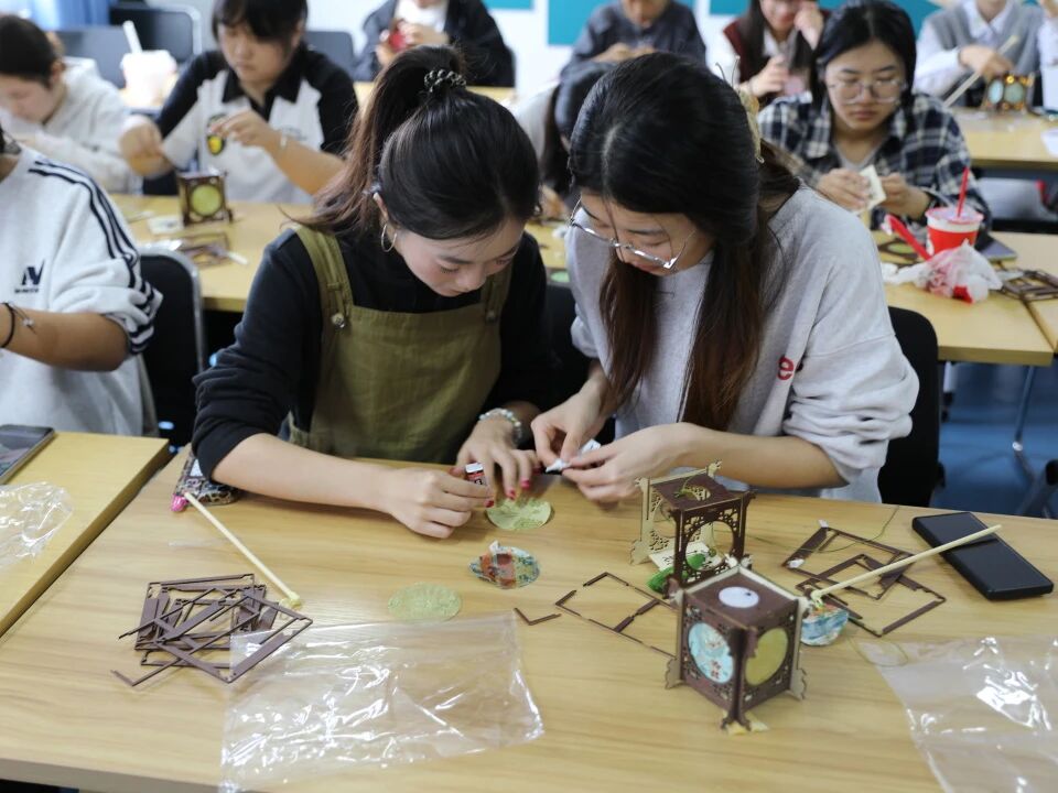 活动现场,学生们分工协作、分享技巧,指尖翻飞间,花灯雏形逐渐显现,随着制作深入,传统工艺的精巧与智慧层层展现。当一盏盏独具匠心的花灯被点亮,暖黄光影交织流转,既映照着传统文化的温度与韵味,更让“祈美满、庆安康”的美好寓意,在制作与观赏的过程中,悄然根植于学生心中。