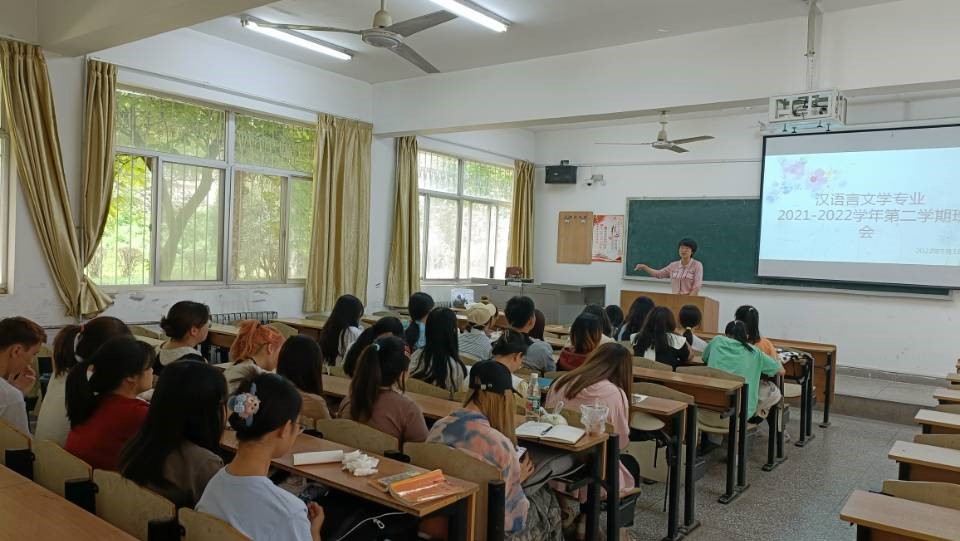 2022年5月18日早,beat365在线唯一官网汉语言文学2101班在一教102召开第二学期班会。本次班会由孙雪花主持,班级全体同学参加。