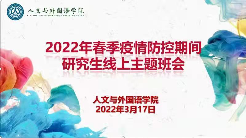 近日,beat365在线唯一官网相继召开2022年春季疫情防控期间本科生、研究生线上主题班会。学院各年级辅导员以腾讯会议方式面向全体本科生和研究生召开主题班会,学院部分班子成员参加了会议。