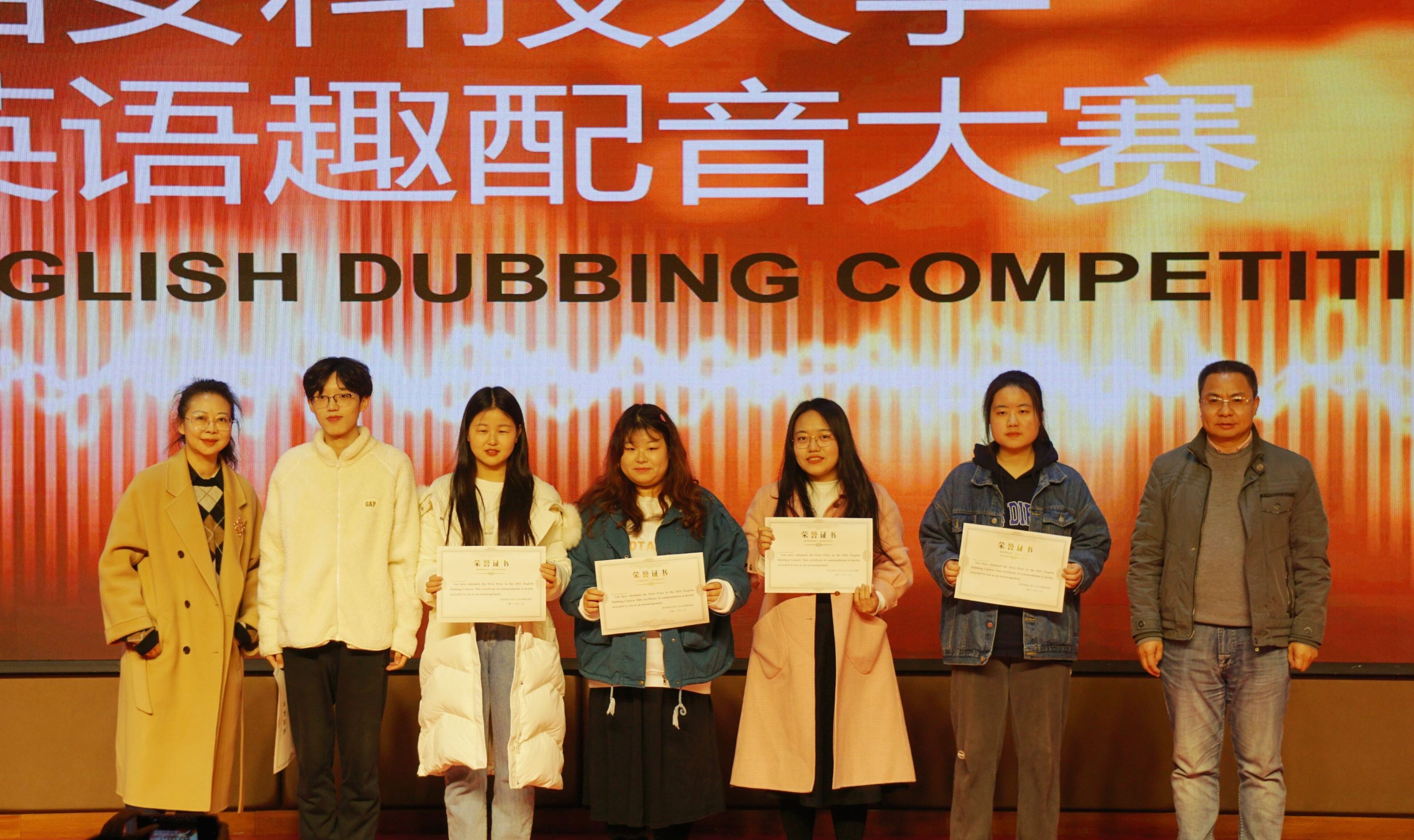 比赛伊始,杜戍涓老师致欢迎辞,表达了对到场嘉宾的热烈欢迎和对同学们趣味学习的支持,为此次配音比赛正式拉开帷幕。致辞过后,比赛正式开始,来自20级的十二支队伍依次上场,各参赛队伍所选取配音素材包罗万象,立意新颖。《后妈茶话会》、《甄嬛传》、《哪吒之魔童降世》等经典影视名作惟妙惟肖的创意配音,为观众呈现了一场场精彩绝伦的视听盛宴,赢得了评委与观众的一致好评。经过激烈角逐,最终王宇桦等人演绎的配音作品《后妈茶话会》荣获一等奖;刘若瑜等人演绎的配音作品《哪吒之魔童降世》与张栩青等人演绎的配音作品《神偷奶爸》荣获二等奖;程万丽等人演绎的配音作品《沉睡魔咒》、薛怡欣等人演绎的配音作品《蓝精灵》、杨舒涵等人演绎的配音作品《狮子王》荣获三等奖;任梦晗等人演绎的配音作品《沉睡魔咒》、白书宇等人演绎的配音作品《飞屋环游记》、王旭旭等人演绎的配音作品《甄嬛传》、马雪飞等人演绎的配音作品《超能陆战队》、丁思源等人演绎的配音作品《小王子》以及张艺馨等人演绎的配音作品《小猪佩奇》荣获优秀奖。