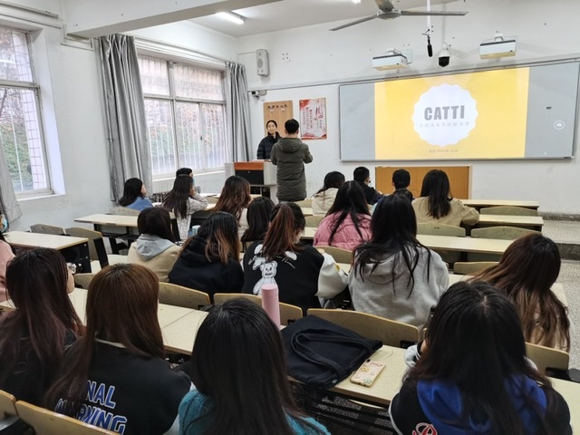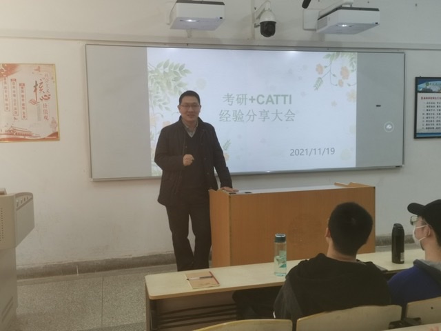 11月19日英语系在2教104举办考研及翻译专业资格考试(CATTI)经验分享会,会议由英语系副主任廉张军主持,2019级英语专业全体学生参加。