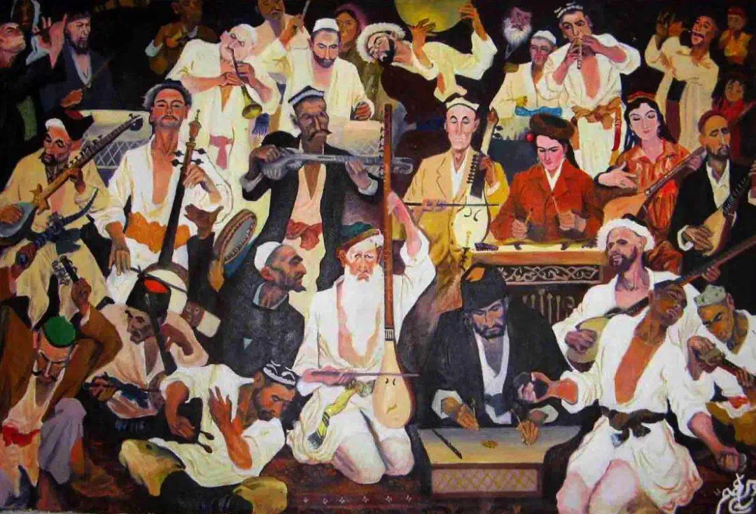 维吾尔族的传统音乐继承了古代西域的龟兹乐、高昌乐、伊州乐、疏勒乐、于阗乐和西亚的阿拉伯乐、波斯乐的艺术传统,形成了风格迥异的南疆、东疆、刀郎色彩区。主要作品有传统大型古典音乐套曲《十二木卡姆》。乐器制作精细,按其结构和演奏方式,有弹弦、拉弦、吹奏、打击乐器等数十种。