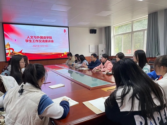 2021年10月14日晚,beat365在线唯一官网在骊山校园2教226召开学生工作交流座谈会。学院党委副书记张振中主持会议并介绍了本次交流会的目的和意义,团委书记张晶晶,来自全院四个年级的学生代表参加会议。