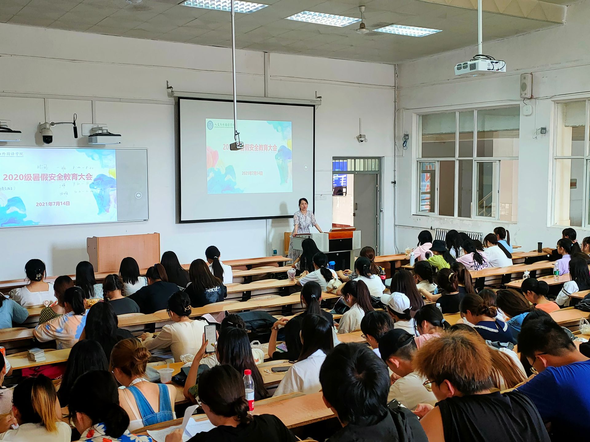 本次暑假安全教育大会对学生在假期生活中可能出现的问题进行提醒,提高了同学们的安全防范意识,坚定了大家为未来奋斗的决心。