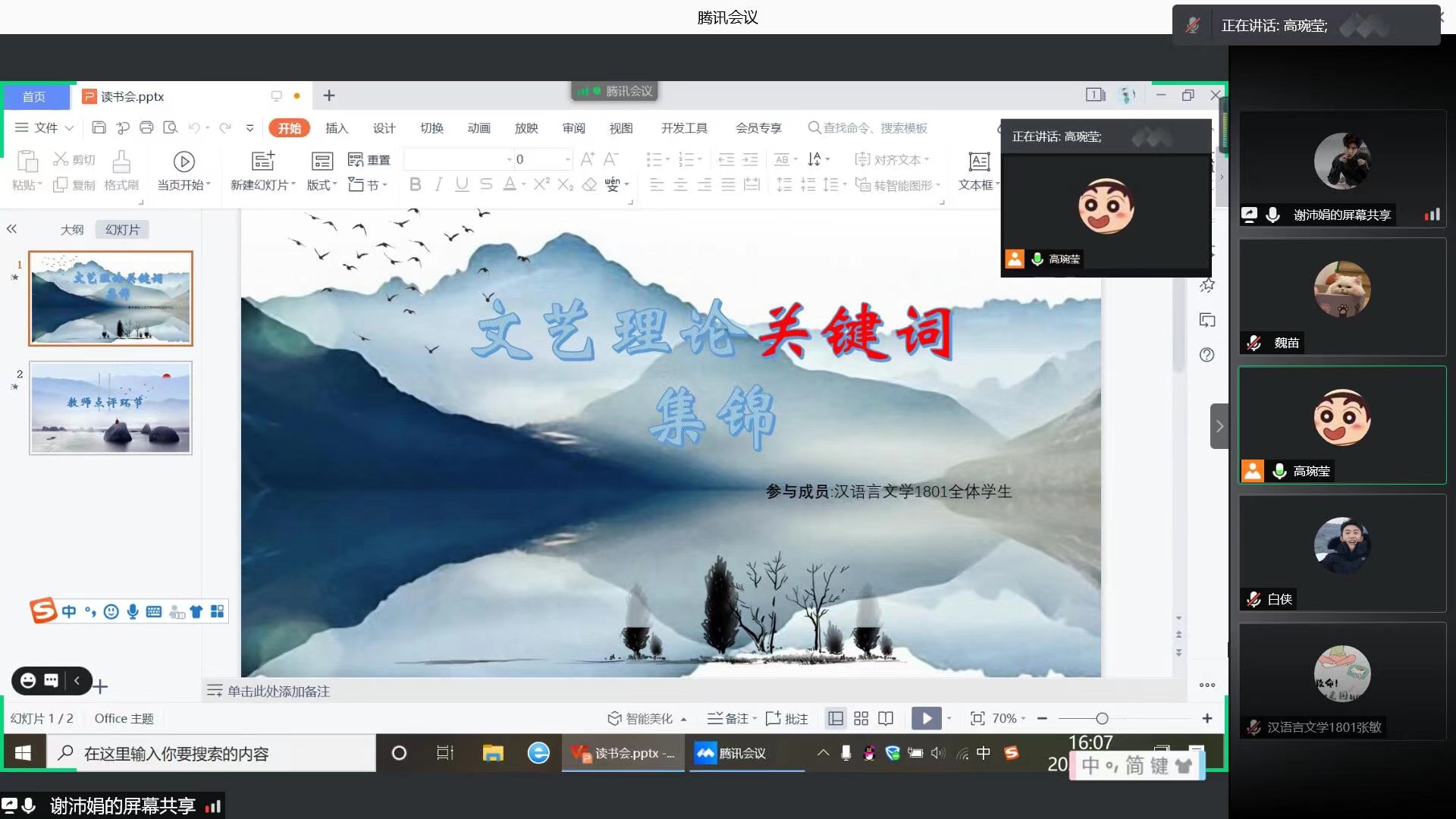 “立身以力学为先,力学以读书为本。”为了丰富同学们的文化生活,营造良好的学习氛围,3月22日下午,beat365在线唯一官网汉语言文学专业组织开展了一期线上读书交流会活动,指导老师杨洪敏及汉语言文学专业1801班全体学生参加活动。
