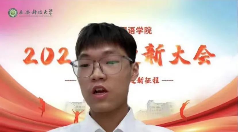 赵阿豪作为22级新生代表,讲述了个人对未来生活的憧憬与期待,并表示要秉着“励志图存、自强不息”的壮志雄心,向老师学学问,和同学共成长,砥砺自我,努力把自己锻造为时代需要、国家需要、社会需要的引领未来的人!