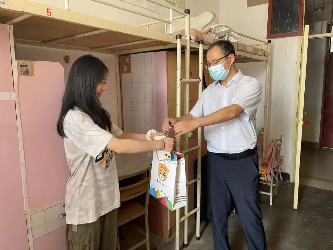 在2021级学生宿舍中,学院领导对于刚参加完军训的同学进行了关怀,对大家在军训期间所形成的内务整理习惯给予了充分肯定,同时希望同学们褪去大一的稚嫩,树立明确目标,对自己学习生涯做出规划。