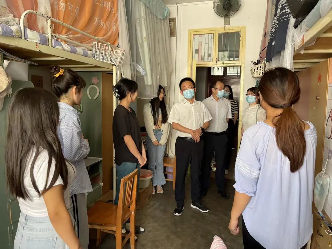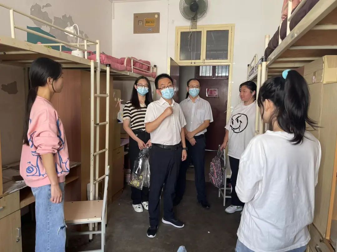 在2022级新生宿舍里,学院领导与新生亲切交谈,详细了解新生到校后的生活情况,倾听同学们的感受,询问宿舍设施是否完备,解答新生们提出的问题,鼓励他们尽快融入班级、融入学校、学院大家庭。“以前住过校没有?”“有什么困难,及时向老师反映”,一句句关心的话语让初入人外的新同学倍感亲切和温暖。