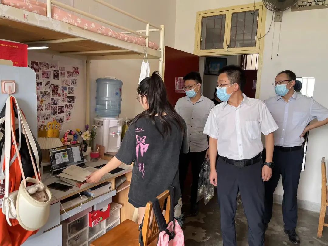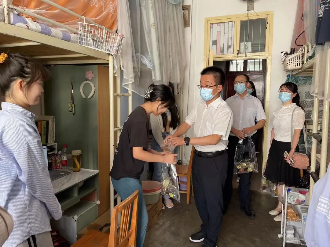 在慰问2019级学生宿舍时,学院领导深入了解暑期留校复习考研学生的学习生活情况,希望有考研意向的同学锚定目标不放松,坚持努力到最后一刻;有就业意向的同学树立正确的就业观,紧抓一切机遇尽快找到合适的用人单位。另外,费秀水还嘱咐同学们在准备学业的同时也要注意个人的身心健康,劳逸结合,让自己的学习生活充实而美好。