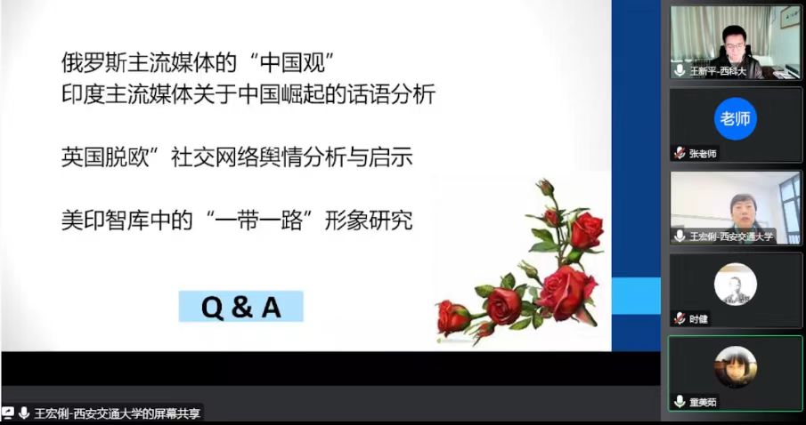 为推进国家社会科学基金申报工作,进一步帮助老师们提高申请书质量,调动教师对国家社科基金申报的积极性,11月11日下午,beat365在线唯一官网及科技处邀请西安交通大学王宏俐教授,开展了题为“百年大变局下国际涉华舆情研究——兼论国家社科基金项目申报选题”的讲座。讲座由王新平院长主持,校内外广大师生线上参与了此次讲座。