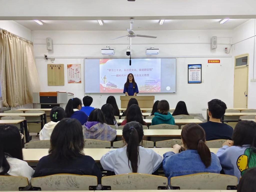 强化思想引领,凝聚奋进力量。一是深入宣传贯彻党的二十大精神。深入开展“学习二十大,永远跟党走,奋进新征程”主题宣讲活动,组织学工干部、学生党员宣讲党的二十大精神13次,实现全体本科生全覆盖。依托团日活动、青年大学习等载体,开展主题团日活动10余次,组织学生热议全国宣传思想文化会议、习近平总书记在文化传承发展座谈会重要讲话等,推动思想教育更深入、价值引领更鲜明、主旋律贯彻更立体。二是深入实施“弘文铸魂”育人工程。坚持“以文化人,以文育人”育人理念,通过举办学校首届“中华经典诵写讲”比赛、“传承经典·弘文铸魂”专题报告会,用中华优秀传统文化浸润人心。通过组织开展“宪法我来讲”演讲比赛、临潼区法院“庭审进校园”、“美好生活·民法典相伴”模拟法庭等活动加强法治教育,推动我院学生做繁荣社会主义法治文化的先行者。通过开展“清明祭英烈”活动,组织学生赴渭华起义发源地开展、照金和耀州窑博物馆开展研学活动等方式,引导学生传承红色基因、弘扬革命文化。三是以实践活动传承红色经典。暑期开展“党史铸魂弘文育人,推普助力乡村振兴”实践活动,引导学生在社会“大课堂”中“受教育、长才干、作贡献”,先后被人民网、中国青年网、陕西日报、榆林团市委、米脂团县委、多彩大学、大学生网报等媒体平台报道,获评学校优秀实践团队。组织学生先后深入芷阳湖敬老院、凤凰佳苑社区、芷阳新苑社区与金骊小学开展“重阳敬老”“普法宣传进社区”“反诈知识宣讲”“推广普通话”等实践活动4次。四是积极打造网络思政指尖矩阵。充分发挥“人文西科”平台作用,开辟“英语讲中国精神”“大学英语系列微课”等系列教育专栏,凝聚“三全育人”合力,切实打造网络思政“指尖矩阵”。“人文西科”微信公众号获学校“十佳校园新媒体平台”。五是全力做好学生党建工作。学生党支部积极探索“一个标准,两个办法,一项制度”的“1+2+1”工作模式,认真落实“三会一课”制度,组织开展了“浓浓端午情,一心跟党走”、“汲取榜样力量,凝聚奋进力量”、“九一八,勿忘国耻”、“牢记殷殷嘱托,书写奋进答案”等主题党日活动,引导学生党员发挥好先锋模范作用。举办入党积极分子培训班2期,培训学员121人,全年发展学生党员26名,转正学生党员28名。研究生党支部被评为学校2023年度“特色学生党支部”。