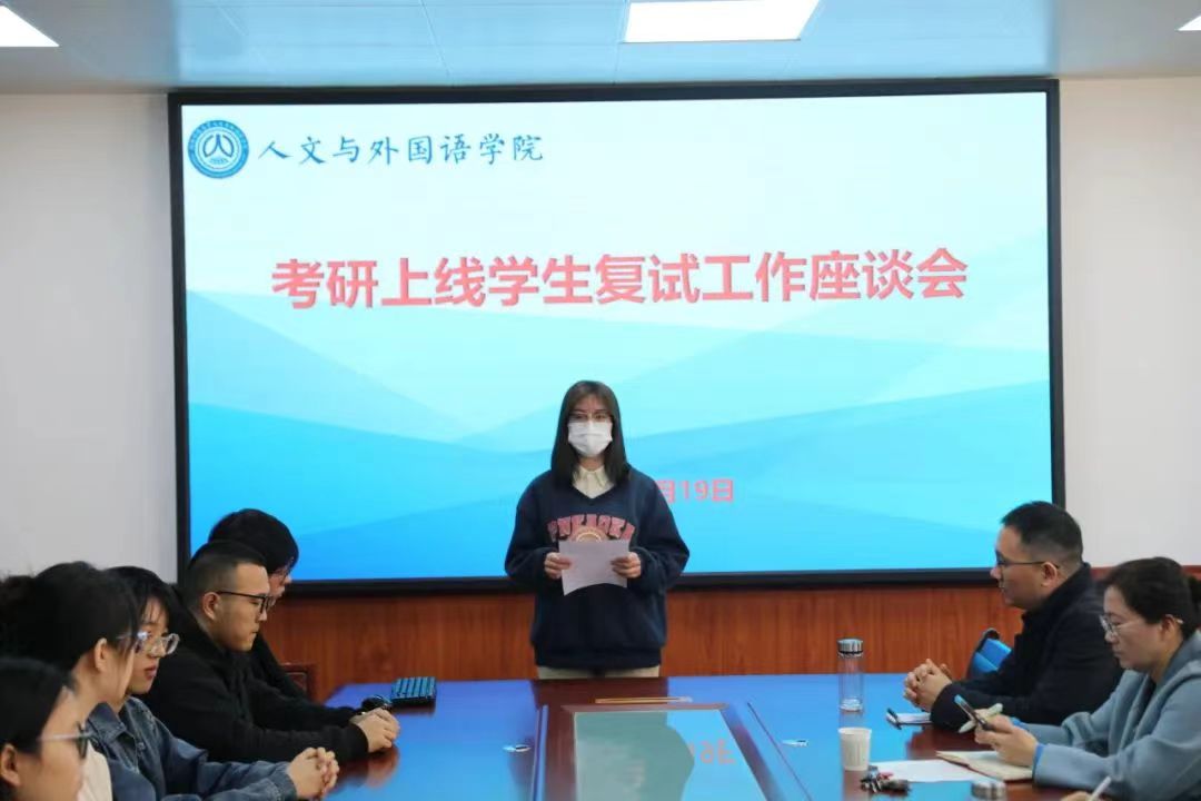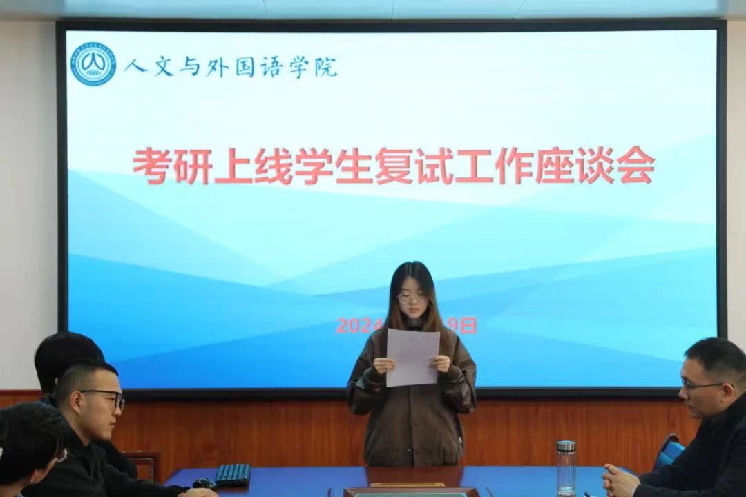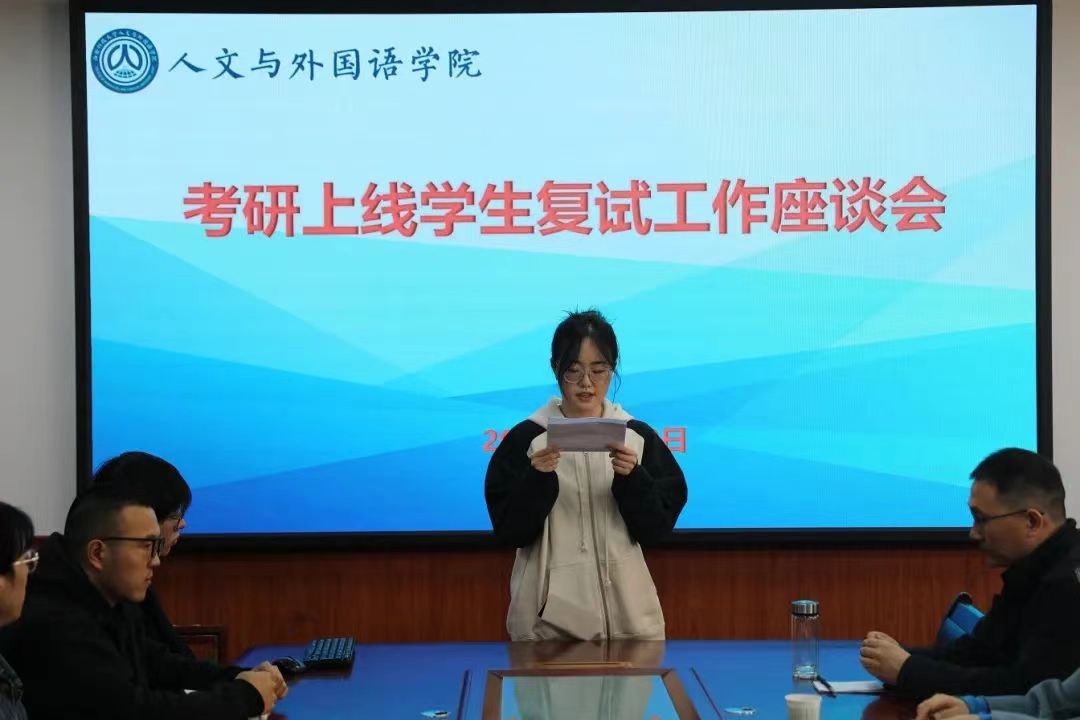 座谈会上,芮智刚通报了2024届毕业生考研就业情况。英语2001班王旭旭、法学2002班雷鑫雨、汉语言文学2001班孙文乐先后作了分享发言。廉张军为学生分享了考研复试过程中的注意事项和相关细节。李焱针对学生提出的问题进行了耐心细致的回答。