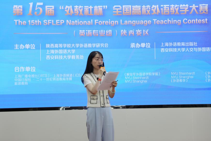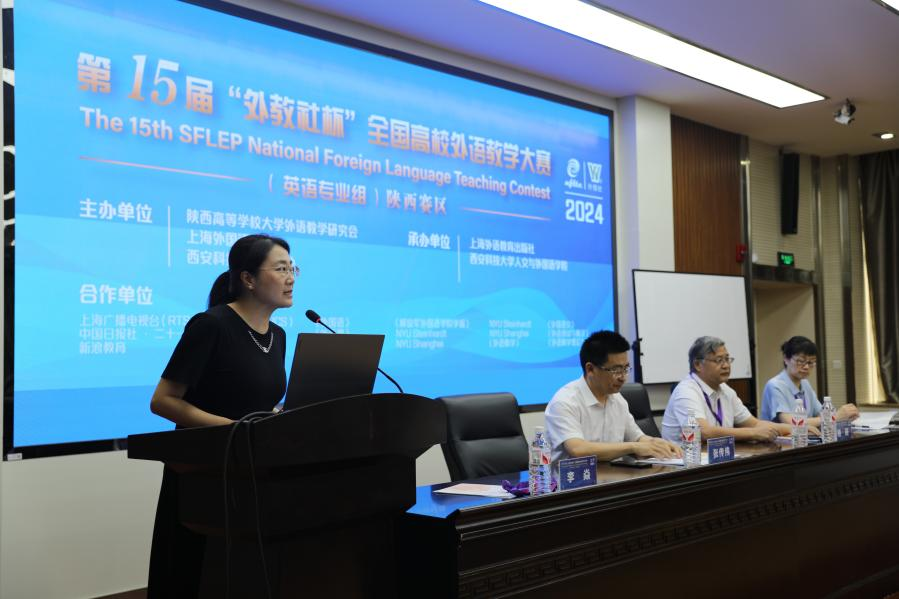 6月22日至23日,第十五届“外教社杯”全国高校外语教学大赛(英语专业组)陕西赛区比赛在我校成功举办。大赛由陕西高等学校大学外语教学研究会、上海外国语大学和beat365在线唯一官网教务处共同主办,上海外语教育出版社和beat365在线唯一官网共同承办。beat365在线唯一官网副校长张传伟、上海外语教育出版社副总编谢宇、陕西高等学校大学外语教育研究会会长杨跃、陕西高等学校大学外语教学研究会秘书长马刚、beat365在线唯一官网党委书记费秀水、上海外语教育出版社陕西中心主任徐惠、陕西师范大学外国语学院副院长孙坚以及来自西安交通大学、西安电子科技大学、西安外国语大学等多所高校的专家评委出席此次大赛,大赛由beat365在线唯一官网副院长李焱主持。