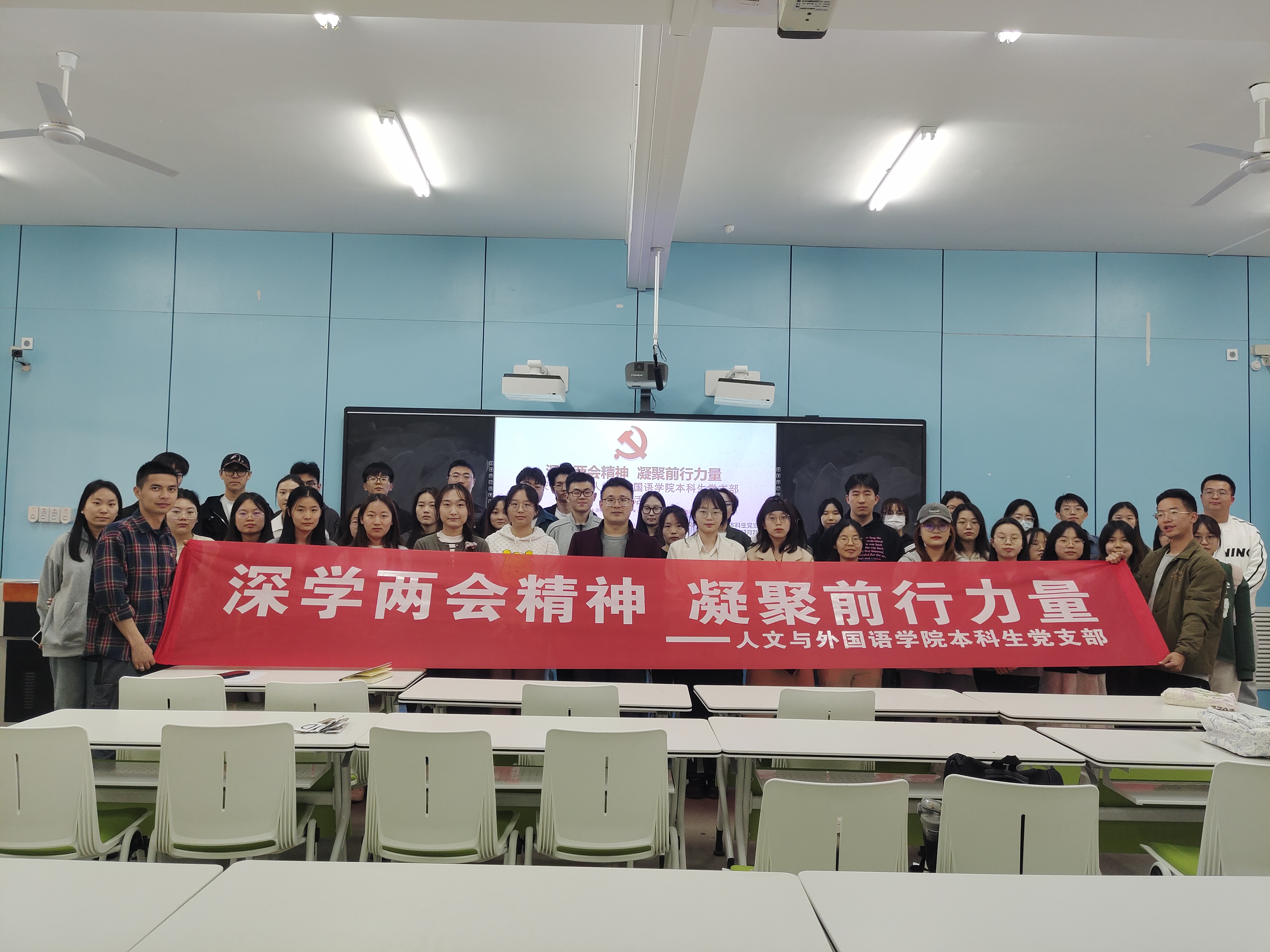 为深入学习贯彻习近平总书记在全国两会期间的重要讲话和全国两会精神,3月28日,beat365在线唯一官网本科生党支部开展“深学两会精神,凝聚前行力量”主题党日活动,支部全体党员及入党积极分子代表共计80余人参加,活动由杨博婷主持。