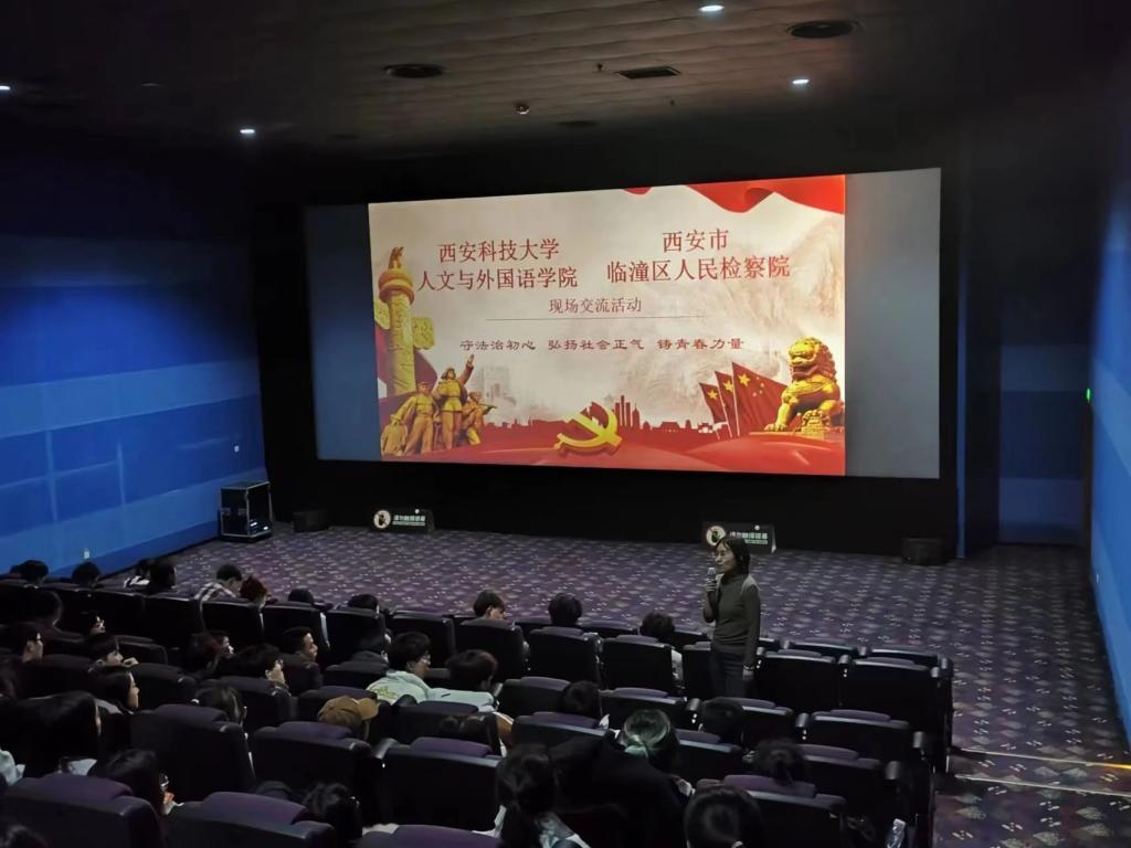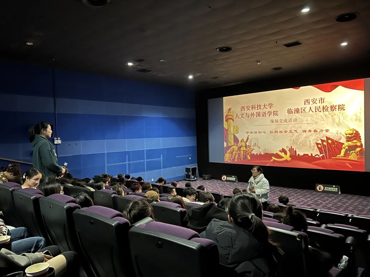 检察院工作人员阐述了观影感受,结合电影情节与生活真实案例作出细致分析,耐心地对学生提出的问题进行答复,勉励学生要秉持学法的初心与使命,树立维护社会公平公正和满足人民的幸福期许的核心理念。