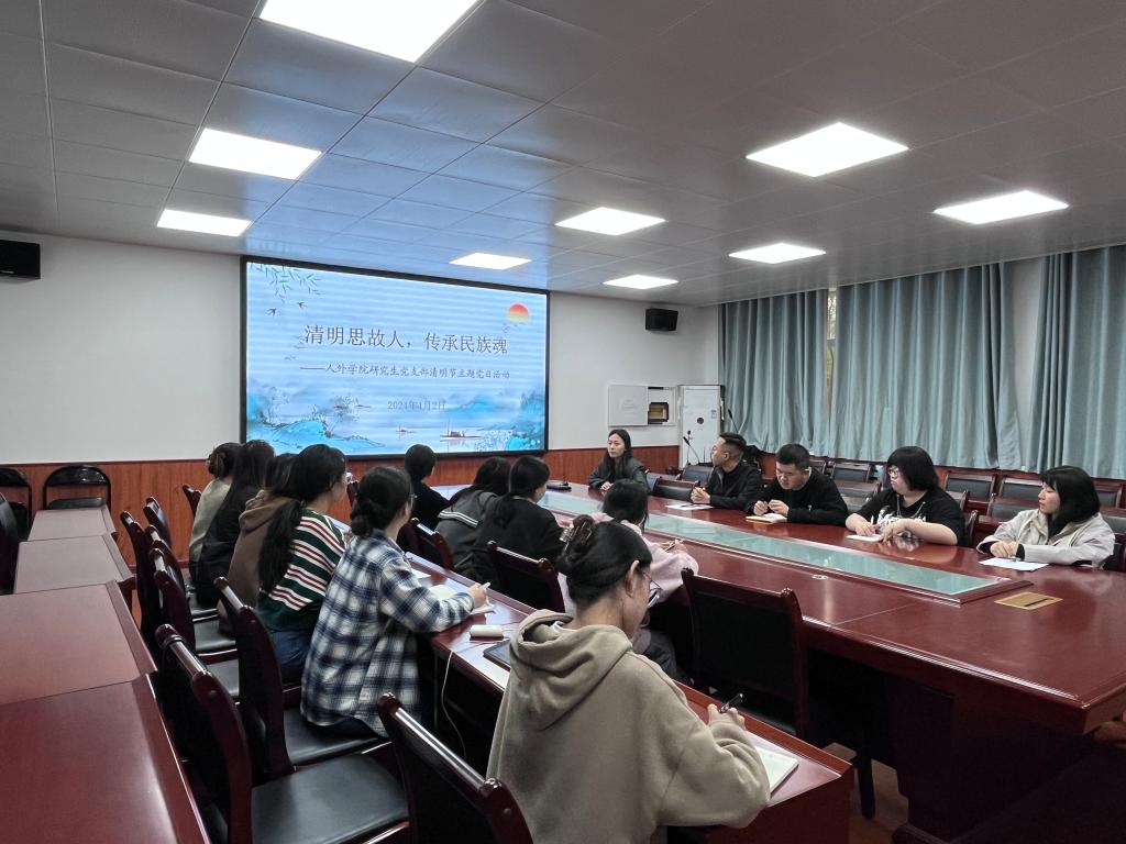 4月2日下午六点,beat365在线唯一官网研究生党支部在骊山校园2教226会议室开展“清明思故人,传承民族魂”清明节主题党日活动,支部全体在校党员、入党积极分子参加此次活动,支部副书记张心雨主持活动。