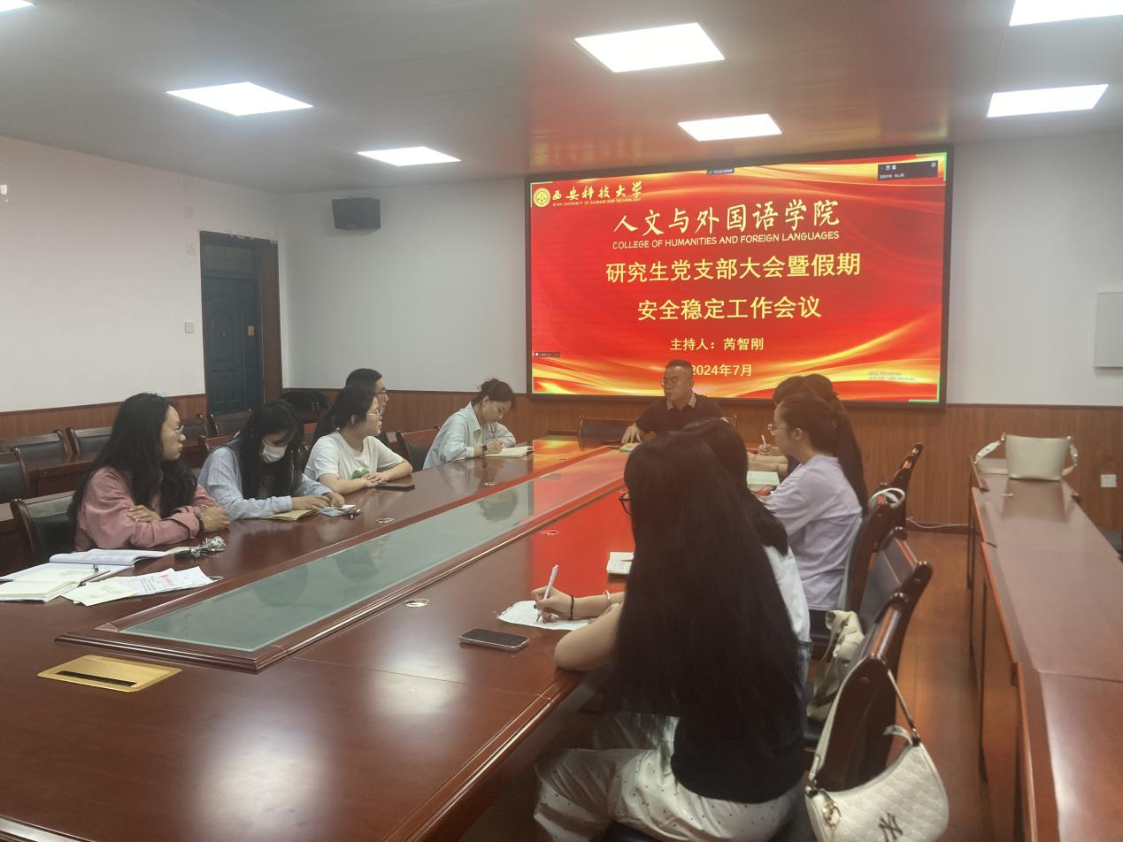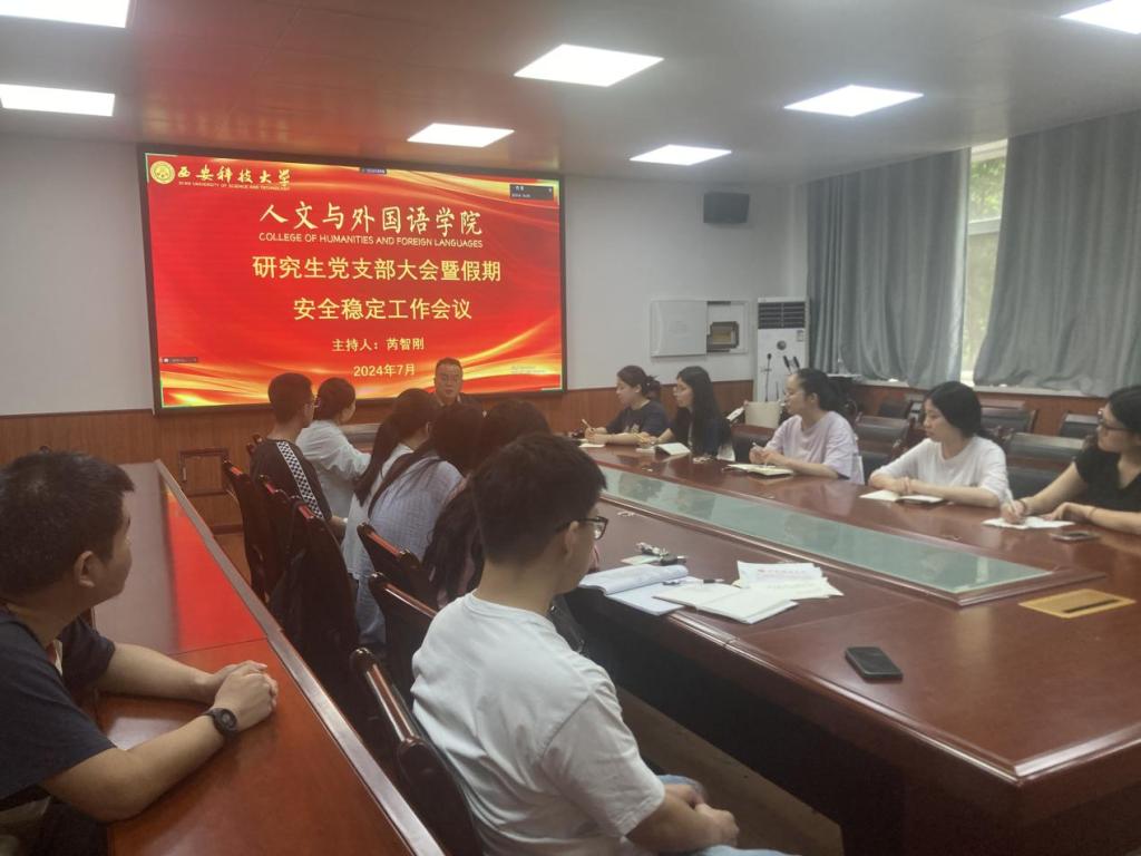 为做好研究生安全稳定工作,7月3日,beat365在线唯一官网研究生党支部在临潼校区2教226会议室召开党支部大会暨假期安全稳定工作会议,会议以线上线下相结合的方式召开,全体研究生党员、2023级研究生参加了会议,会议由研究生辅导员芮智刚主持。