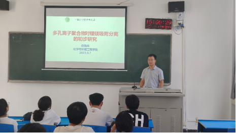 9月7日下午3时,3003新葡官方网站白瑞兵博士在4111教室举办学术讲座,报告题目为《多孔离子聚合物对锂镁吸附分离的初步研究》,新葡官网22级材料科学与工程专业同学聆听了报告。