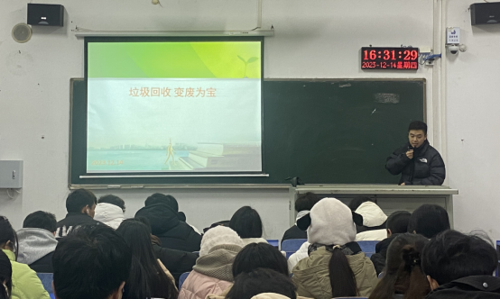 齐帅征博士结合自己的教学经验和科研实践,从环境生态专业角度详细地从垃圾的现状、城市垃圾对环境的危害等方面说明了垃圾回收利用的原因和必要性。然后从改变外部条件和改变自身属性两个方面介绍了厨余垃圾的利用方法:编织袋堆肥法和蚯蚓堆肥法,并强调了堆肥的重要性,形象地解释了垃圾是放错地方的资源。报告最后,齐帅征博士根据自己科研合作经历从专业角度介绍了园林废弃物的综合利用,提高了同学们对环境治理的科学认识。