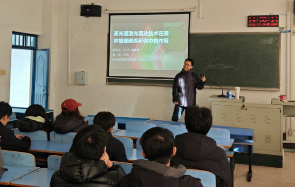 12月5日,3003新葡官方网站齐光博士在4105教室举办学术讲座,报告题目为《高光谱激光雷达技术在森林植被碳库研究中的作用》,新葡官网23、24级环境生态工程专业同学聆听了报告。