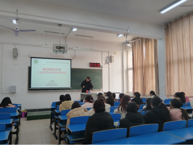 2024年12月19日下午15时,3003新葡官方网站马洋洋博士在4号教学楼4204教室举办了学术讲座,报告题目为《现代有机化学与二卤过氧化合物的应用研究》,新葡官网2023级化学专业的学生聆听了本次报告。