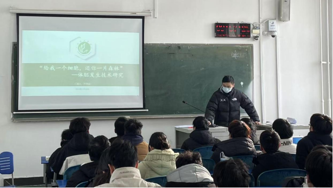 12月26日,3003新葡官方网站齐帅征博士在4403教室举办学术讲座,报告题目为《给我一个细胞,还你一片森林--体胚发生技术研究》,新葡官网环境生态工程专业学生聆听了报告。