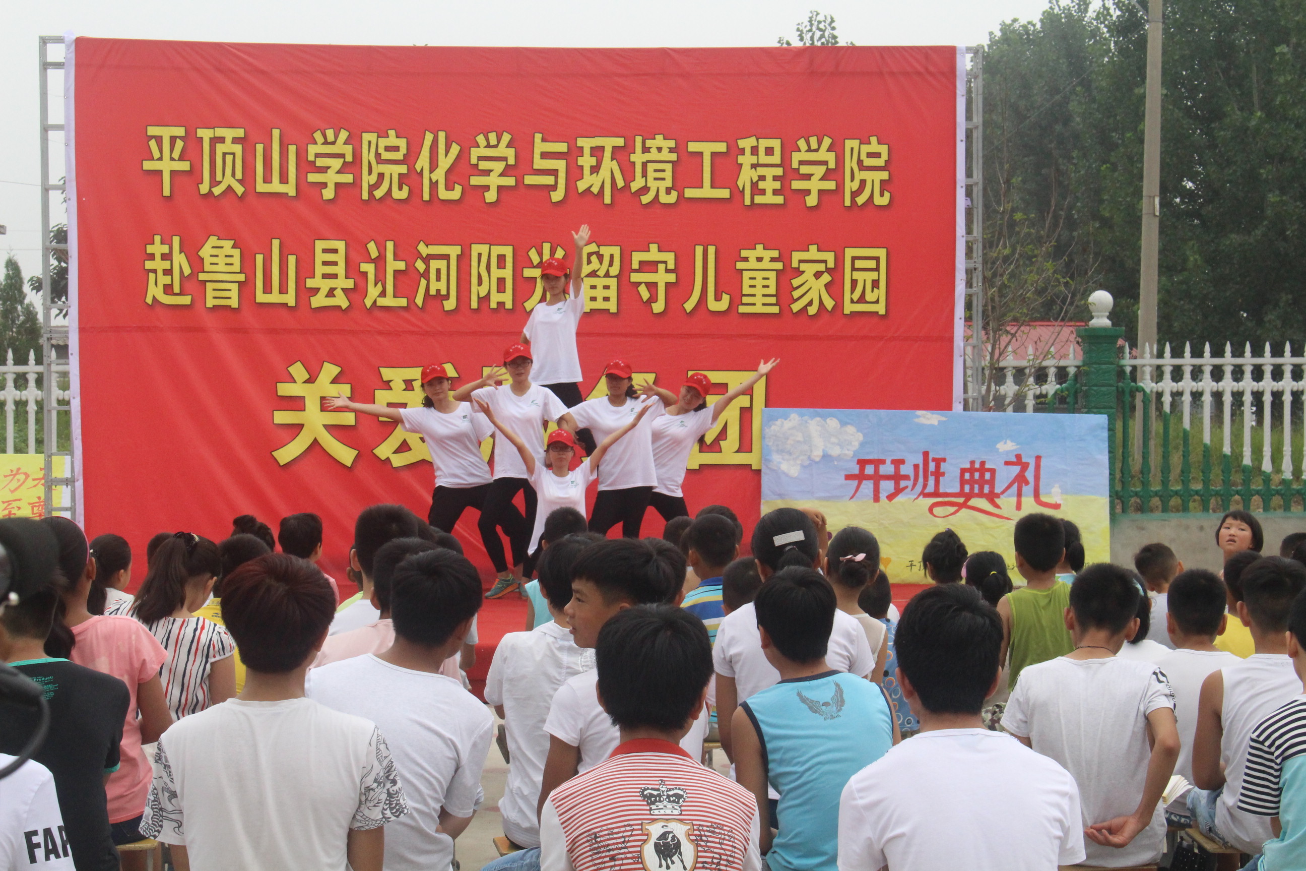 7月12日上午8:00,新葡官网赴鲁山县让河乡留守儿童关爱服务团开班典礼以《青春修练手册》舞蹈开场。阳光留守儿童家园总经理沈玉丙,阳光留守儿童家园园长张顺民,让河乡第五小学校长张亚鹏和带队老师马国杰、全体志愿者、学生及部分学生家长参加了此次开班典礼。