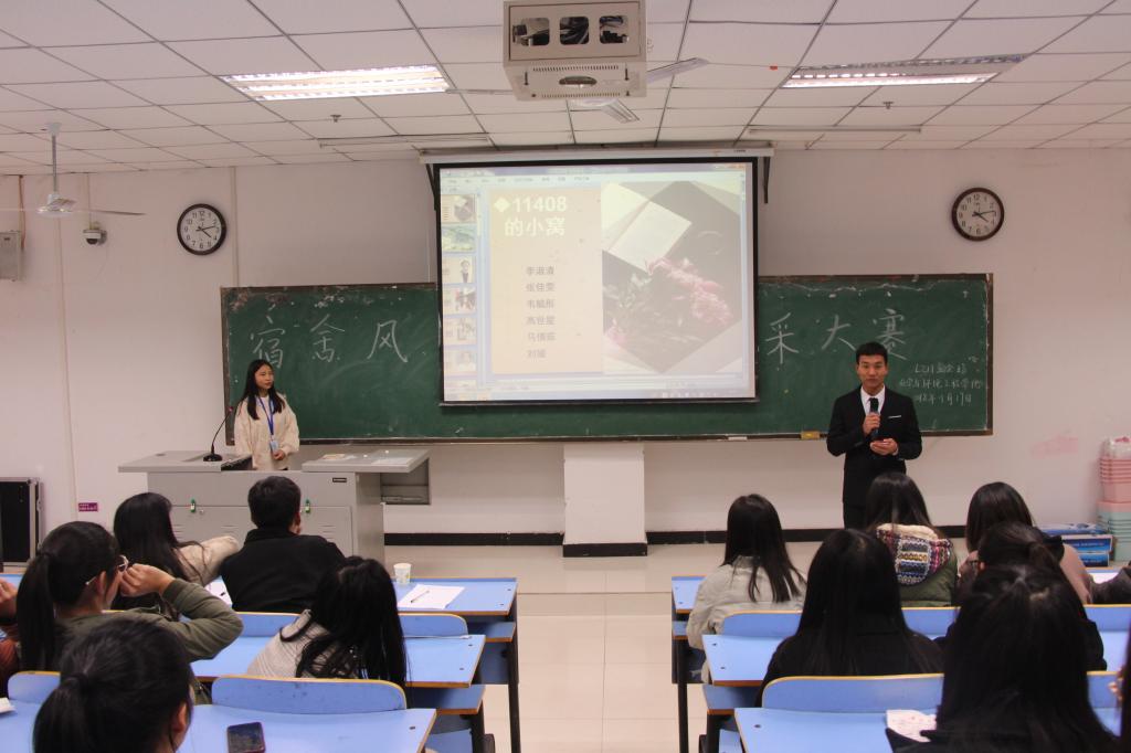 11月17日下午,3003新葡官方网站分别在L211、L311教室开展了以“化环寓你,相知相宿”为主题的宿舍风采大赛。本次大赛由3003新葡官方网站学生会宿管部主办。辅导员罗世颖老师、史小倩老师、学生会主席郭含、团总支副书记陈如辉、学生党支部副书记汪梦珠、社团联合会主席胡梦雨以及部分学生干部担任评委,2018级全体新生积极参加。