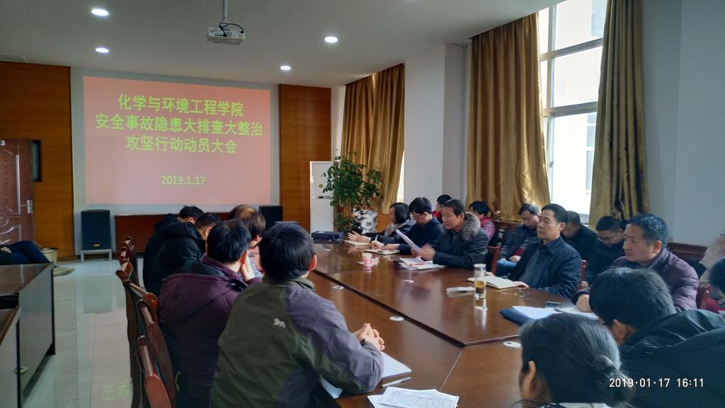 会上,李院长宣读了《平顶山学院开展安全事故隐患大排查大整治攻坚行动方案》,并按照时间安排和工作步骤,结合学院实际情况,主要针对危化品综合治理情况、实验室危险爆炸品规范安全管理,剧毒、易制毒、易制爆试剂采购、储存、出入库管理、使用、废弃物处置等环节情况、气体钢瓶、高压灭菌锅等特种设备的安全管理情况进行了动员、分析和部署。李院长强调:要进一步提高政治站位、进一步提高对安全隐患大排查大整治攻坚行动的思想认识,仔细排查,认真防控抓好落实;要在主体责任明确的基础上,按照工作时间节点要求,认真做好此次安全隐患大排查大整治的材料报送等相关工作,促进新葡官网安全工作的制度完善和经验总结;假期期间严格执行值班制度,切实消除各类安全隐患;充分认识当前安全稳定工作的严峻形势,进一步强化红线意识、底线思维、风险意识和责任意识,深刻汲取近期省内外学校安全事故的惨痛教训,确保化学实验楼安全稳定。