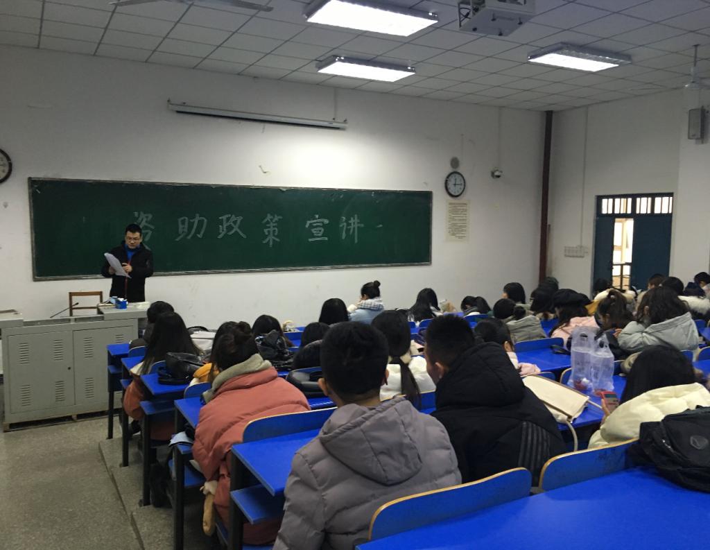 12月27日中午,3003新葡官方网站在3306教室举行了资助政策宣讲课,由师广岭老师主讲。