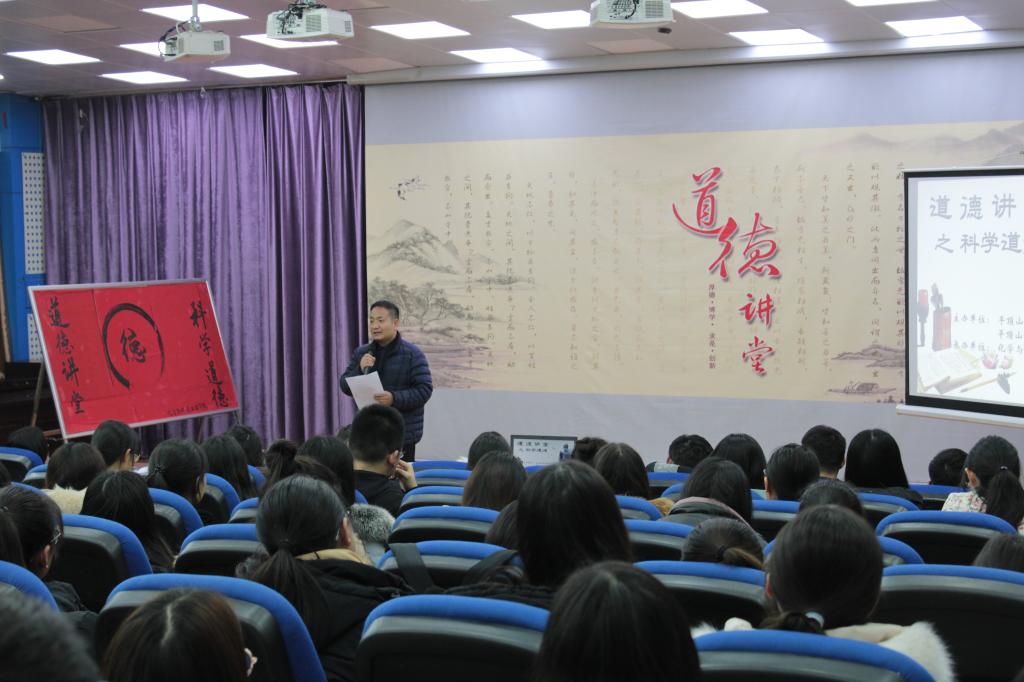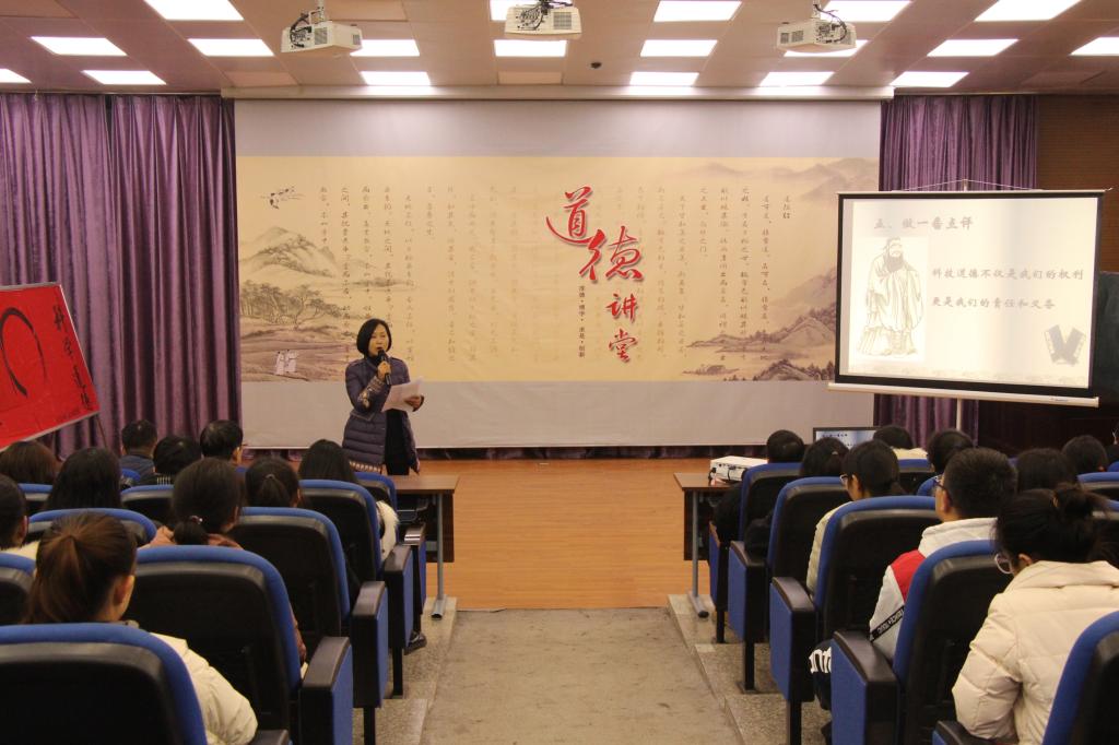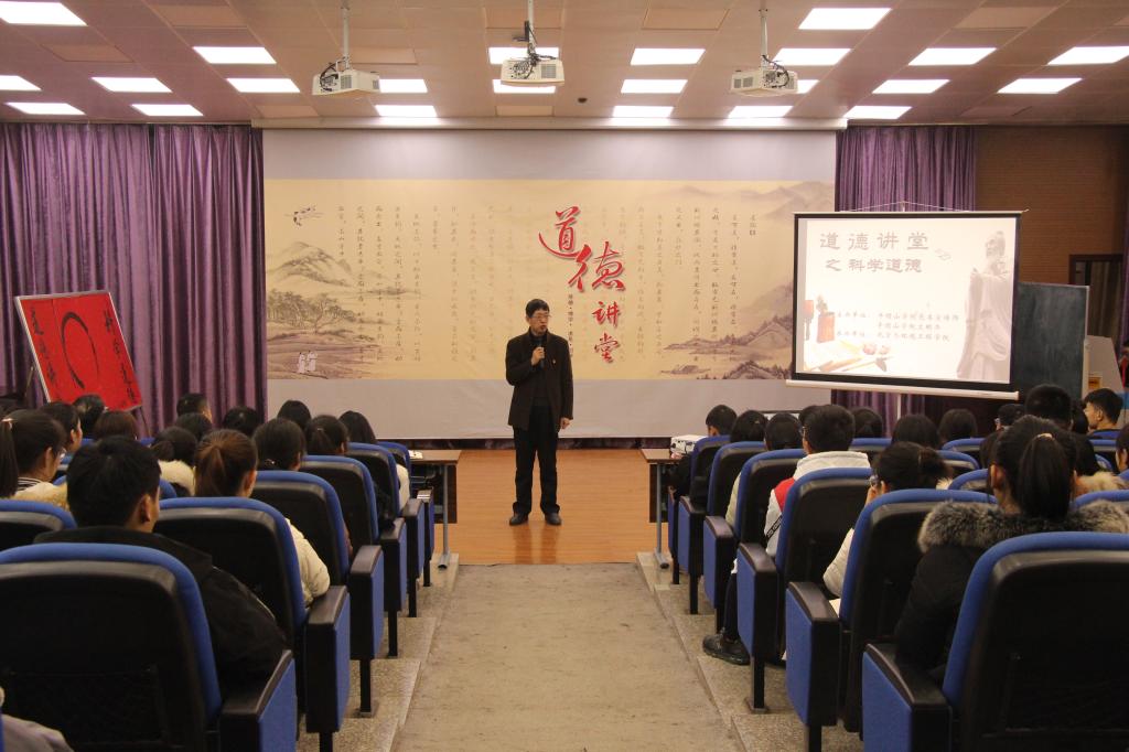 12月25日晚,由校党委宣传部、文明办主办,3003新葡官方网站承办的道德讲堂之“科学道德”在2106会议室举行。3003新葡官方网站师生代表200余人参加了活动。