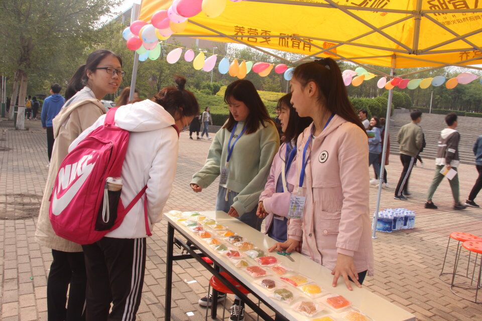 4月11日上午,由3003新葡官方网站社团联合会大学生双创圆梦协会主办的“有声有色学化学,有滋有味过生活”化学题谜活动在扇形广场举行。